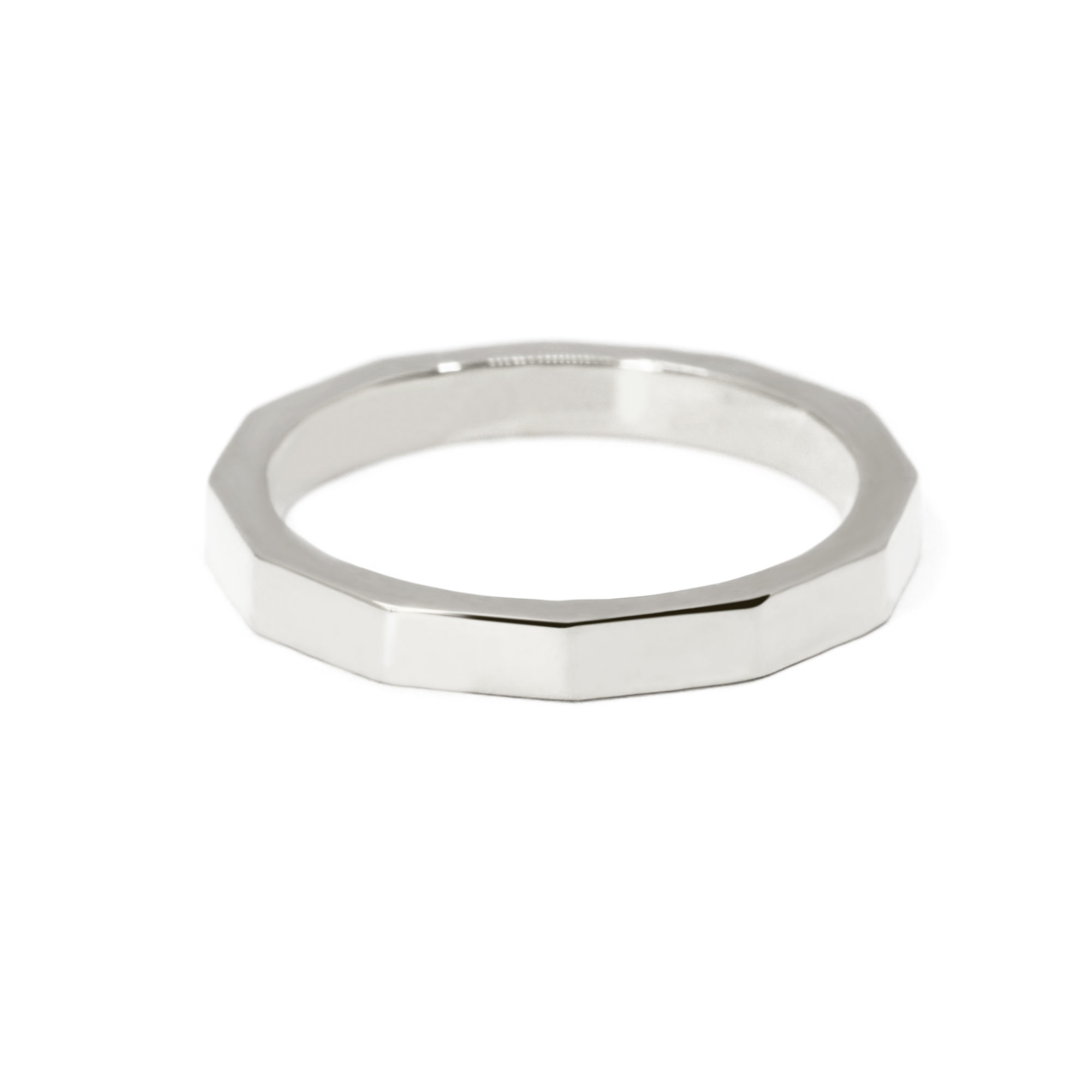 Graphique et minimaliste, cette alliance pour homme en or blanc 18 carats dévoile un design facetté unique, composé de 12 pans réguliers qui forment un cercle parfaitement rythmé. Chaque facette capte la lumière sous un angle différent, créant un jeu subtil de reflets et de brillance, sublimé par une finition polie miroir.
