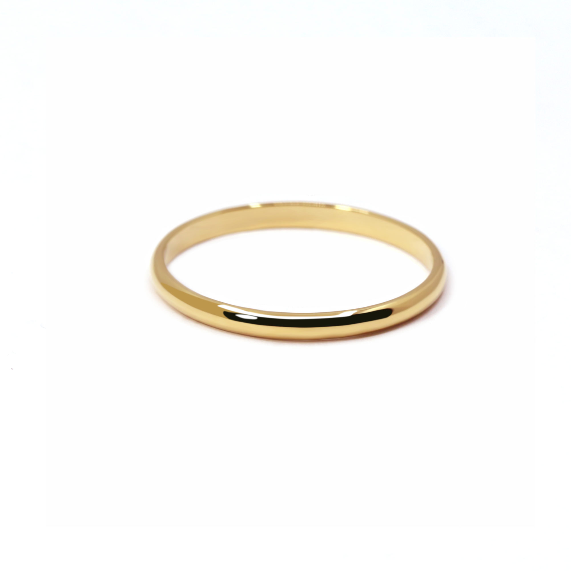 Avec sa largeur délicate de 2,00 mm, elle se distingue par sa sobriété raffinée, idéale pour accompagner tous les styles, seule ou aux côtés d’une bague de fiançailles. Sa finition polie miroir sublime l’éclat chaleureux de l’or jaune, soulignant la pureté de ses lignes sans artifice.