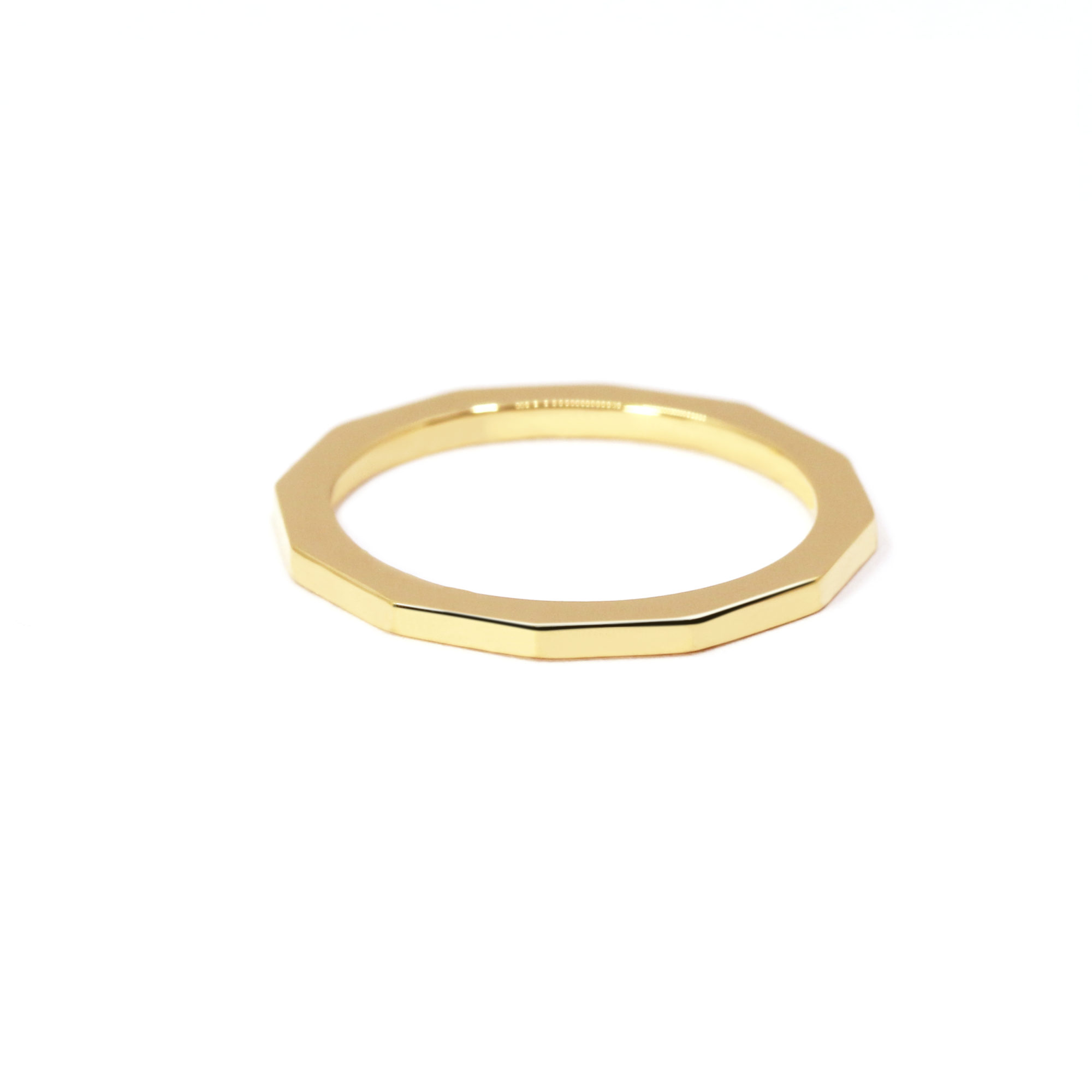 L’alliance Julie en or jaune 18 carats se distingue par son design facetté à 12 pans réguliers, qui captent la lumière à chaque geste. Ses facettes délicatement polies créent un jeu subtil de reflets, apportant à cette bague minimaliste une vibration lumineuse sans ostentation.