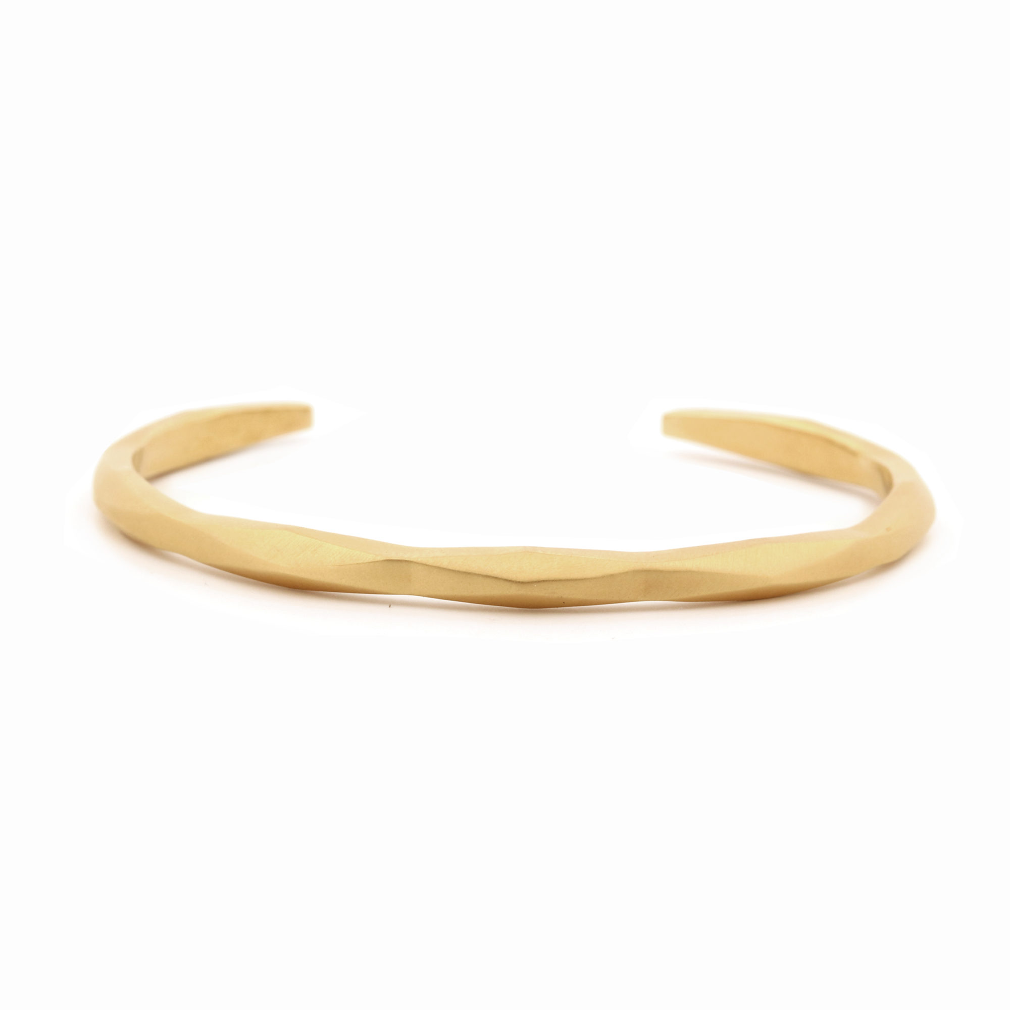 Brut, graphique, instinctif. Ce bracelet jonc issu de la ligne Urban Tribe revisite les codes du bijou tribal avec une esthétique contemporaine. Réalisé en argent plaqué or jaune, il est entièrement facetté à la main, révélant une surface texturée aux arêtes irrégulières, comme taillée dans la matière.