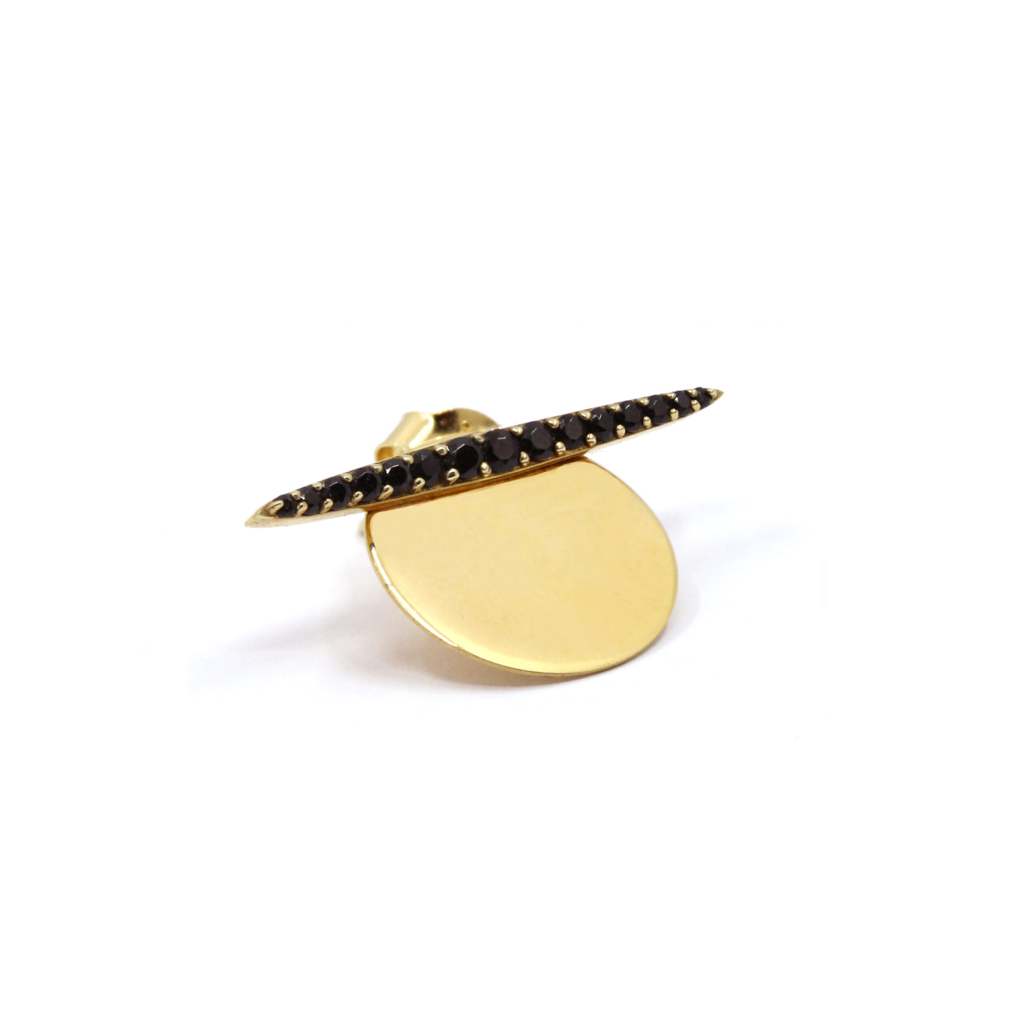 Nouvelle version de l’iconique mono boucle d’oreille Urban Tribe, signature principale des Rêveries d’Eve. En argent plaqué or 18cts et swarovski noirs, son design se démarque par une forme délicate en feuille de sauge et sertie de swarovski noirs.