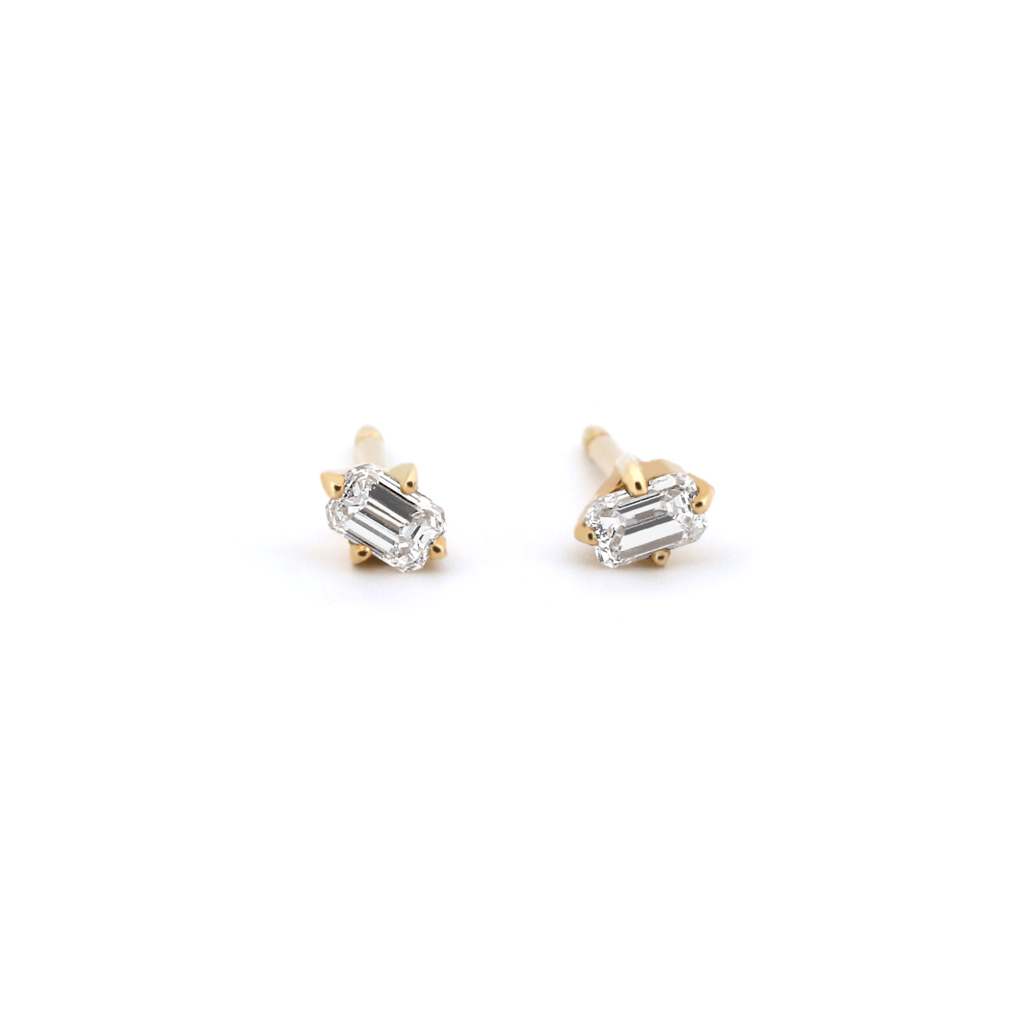 Clous d’oreilles à la forme originale qui apportent un twist de coolitude aux diamants d’oreille. En mélangeant les différentes formes de diamants vous donnerez un rythme à vos oreilles qui brilleront d’un éclat précieux!